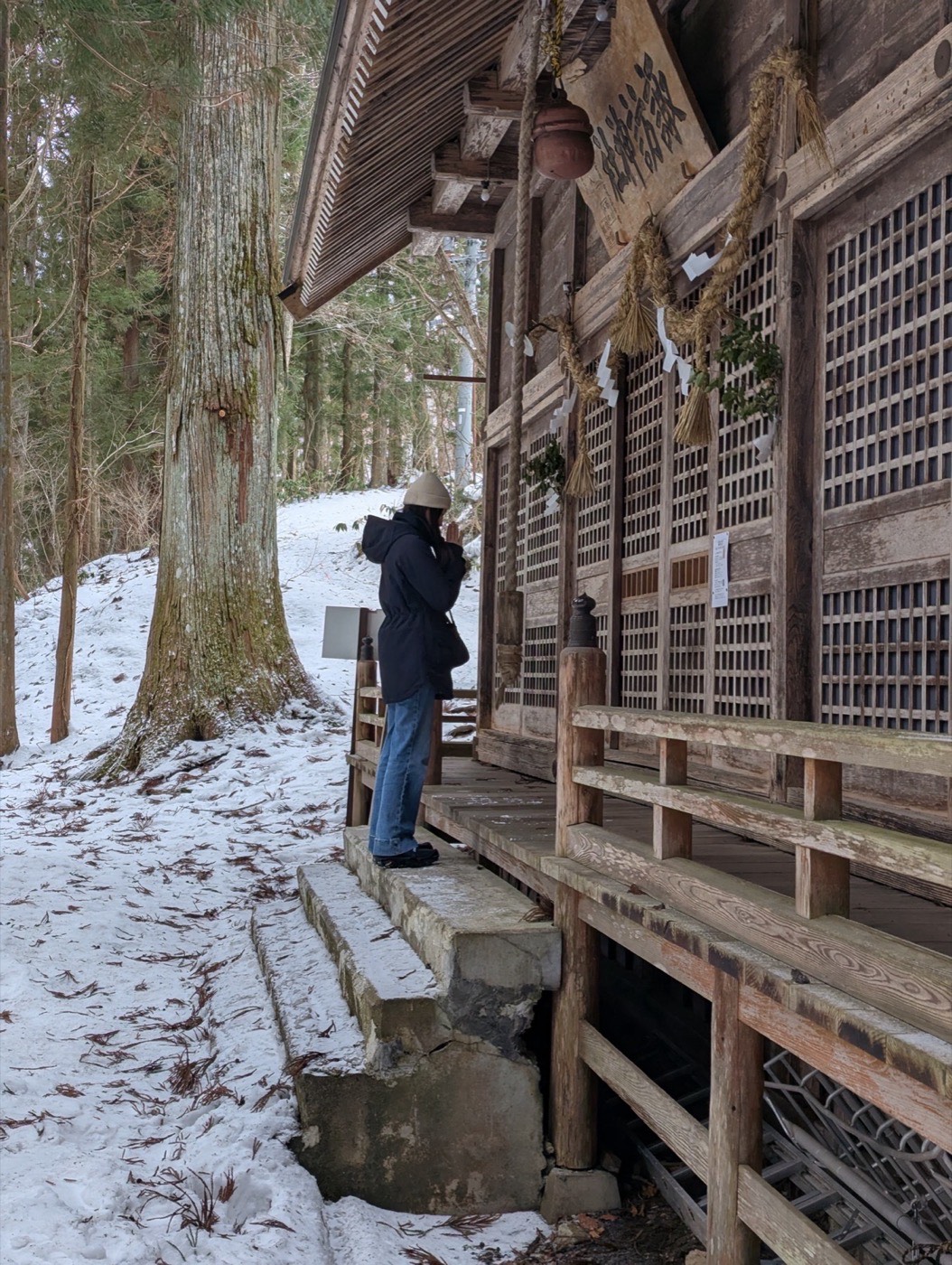 The cedar avenue at Togakushi runs for several hundred metres through deep snow. The trees on either side are enormous, their trunks rising like columns, the canopy closing overhead to filter the winter light into something grey and still. Some of these trees have been standing for four hundred years. You walk between them and something shifts in your chest. Not reverence exactly, not awe in the way that word gets used. Something quieter. The recognition that these trees are not scenery. They are present in a way that makes your own presence feel temporary and small.